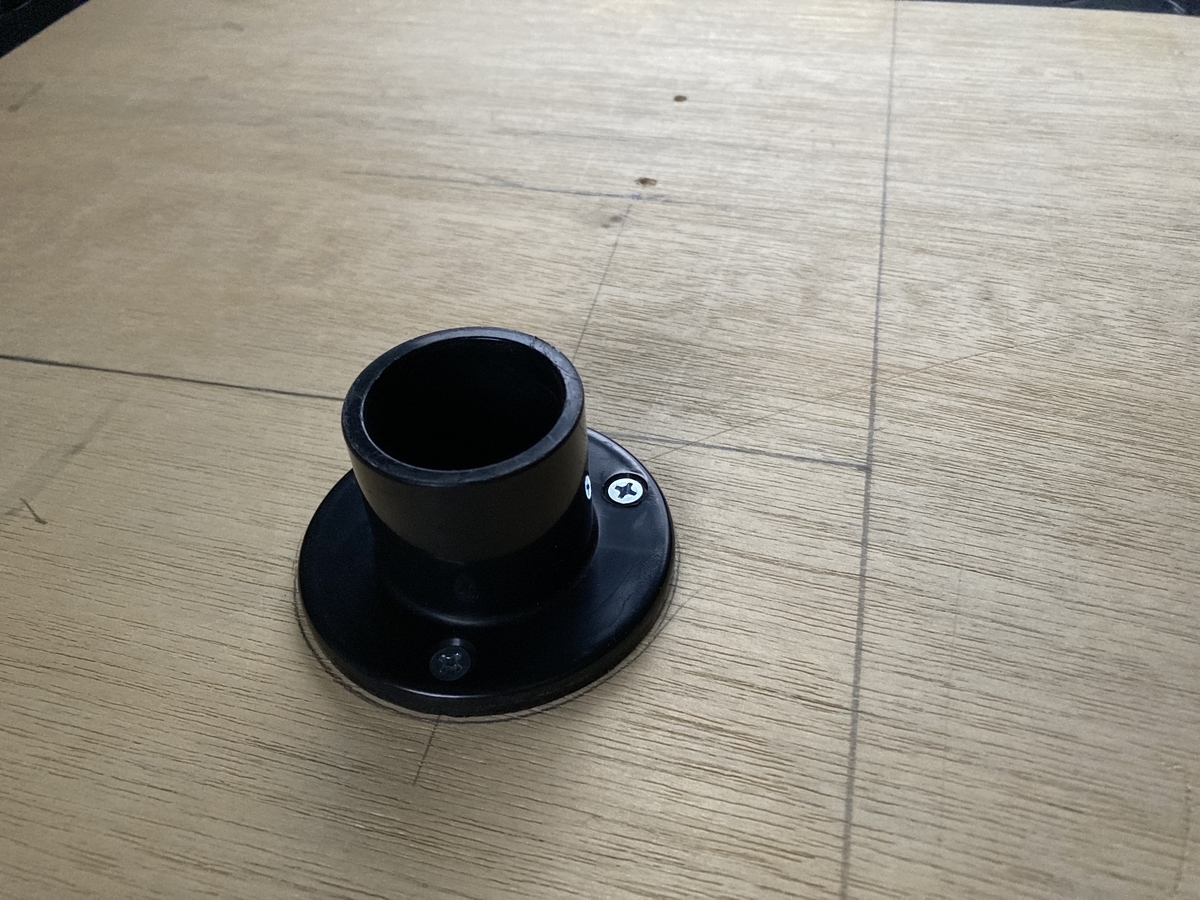 天板とパイプを固定するためにジョイント部品をホームセンタで買ってきて固定します。