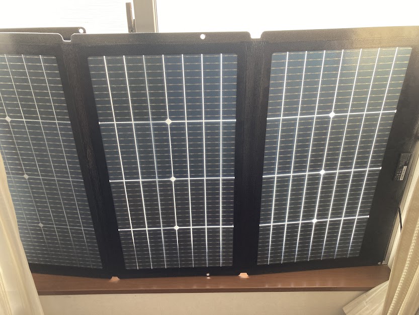 窓の掃き出し部分にソーラーパネルを立てかける。