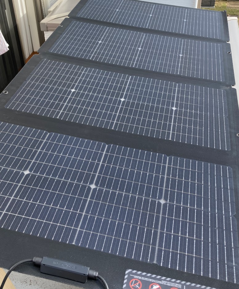 このソーラーパネル(EcoFlowの220W)ですが結構重量があり、取り扱いが大変です。